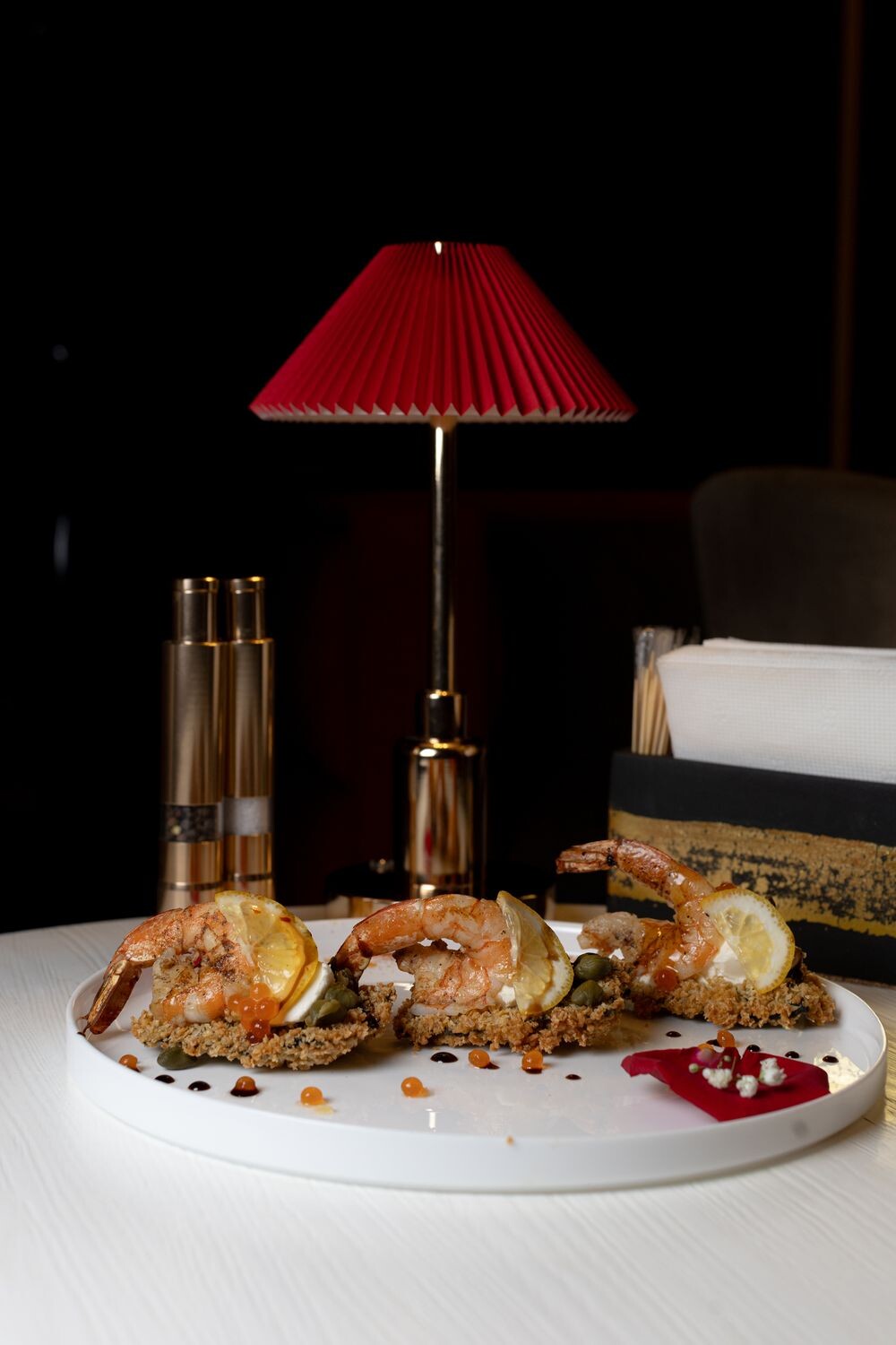 Рис, водоросли нори, креветки в панировке, сыр творожный, каперсы, икра, соус сладкий чили, лимон